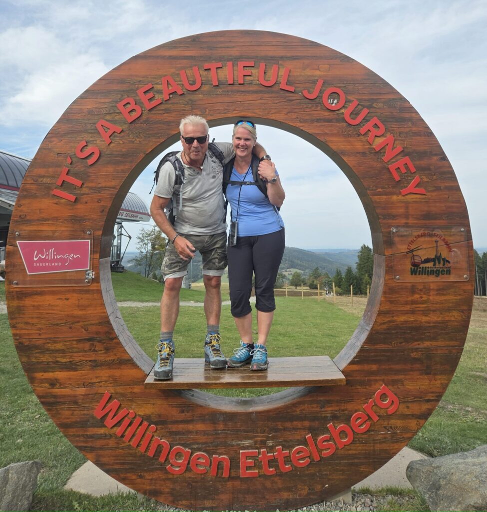 Kaum in Willingen angekommen, wurde das Gruppenfoto schnell erledigt (Beweisbilder müssen schließlich sein) und schon ging es entspannt weiter Richtung Skywalk und Mühlenkopfschanze. Nun ja, entspannt bis zu dem Punkt, wo man sich entscheiden musste: 600 knackige Stufen die steile Treppe hinauf oder den etwas sanfteren Wanderweg durch den Wald. Die Seilbahn hätten wir theoretisch auch nehmen können – praktisch hieß es aber: